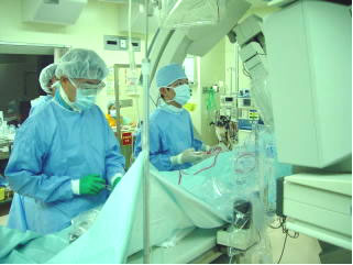 年間の心臓カテーテル検査は約600症例、アテレクトミー、ステント留置術をふくめた冠動脈形成術(PCI) は約200症例、下肢動脈閉塞症に対する血管形成術(PTA)は約200症例施行され、90%以上の成功率が得られています。