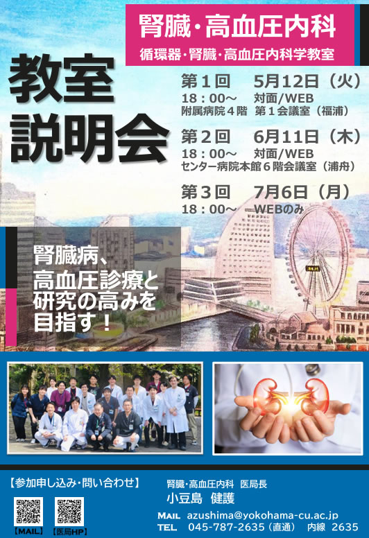 横浜市立大学が横浜市庁舎にて「世界腎臓デー」にあわせたイベントを開催し、附属病院・センター病院の腎臓・高血圧内科医師が協力します!~慢性腎臓病の早期発見・早期治療の重要性を伝える~