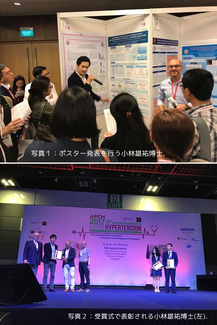循環器・腎臓・高血圧内科学(GR、腎臓・高血圧内科) 小林 竜助教(博士)が平成29年10月20日~10月22日に行われた第40回日本高血圧学会総会(松山)において,Young Investigator’s Award (YIA)優秀賞を受賞し、表彰されました.
