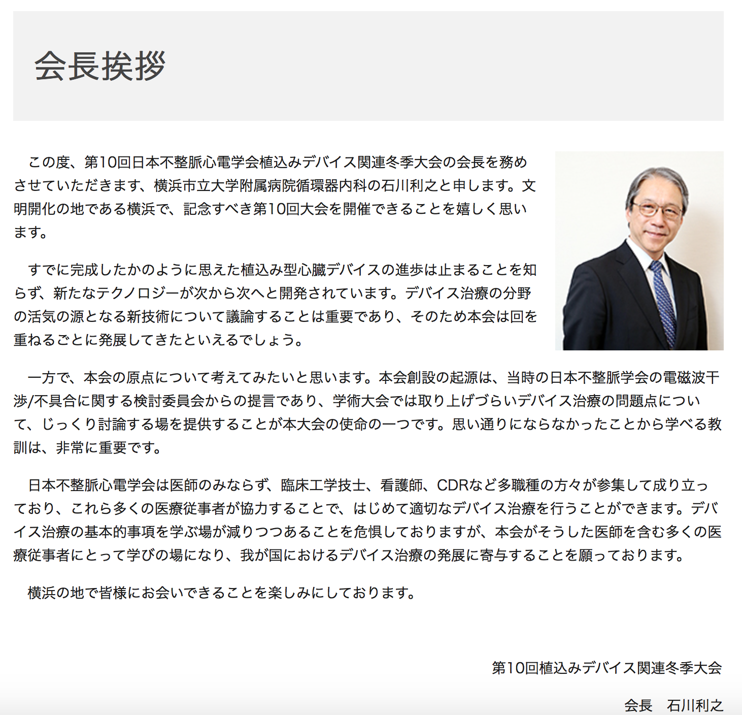 当教室の石川利之教授が会長を務める第10回植え込みデバイス関連冬季大会が2018年2月10日(土)~2月12日(月)まで横浜みなとみらいで開催されます。