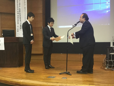 平成29年12月15日に開催された第31回日本冠疾患学会学術集会において大学院4年の中橋秀文の優秀演題賞候補口演演題『急性心筋梗塞患者における腸内細菌由来Trimethylamine-N-oxide 変化と冠動脈病変の重症度変化との関係』が優秀演題賞を受賞しました。