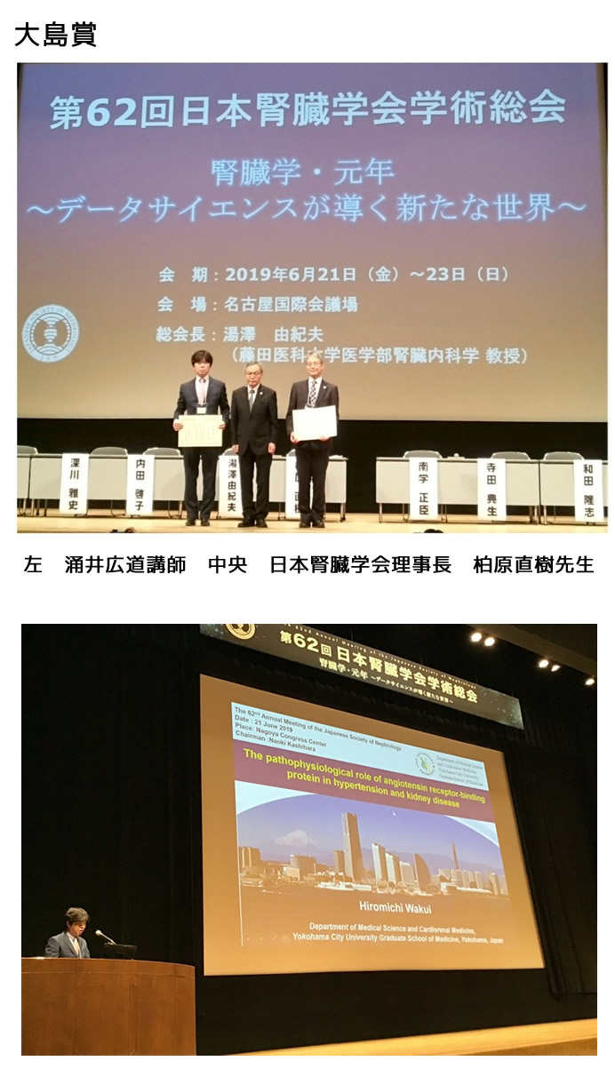 2019年12月14日~15日に東京・新橋でJapan Kidney Council 2019が開催され、市民総合医療センターの鈴木将太助教が奨励賞を受賞しました!