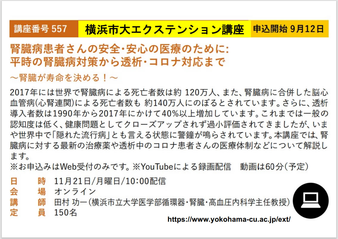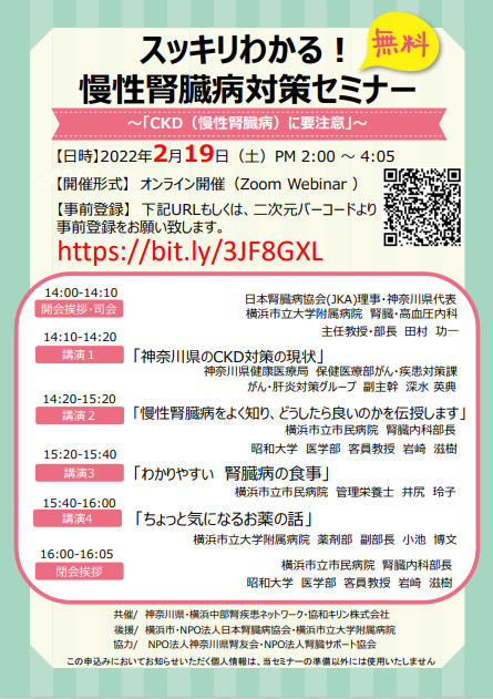 公開講座 【スッキリわかる! 慢性腎臓病対策セミナー(参加・聴講無料)】