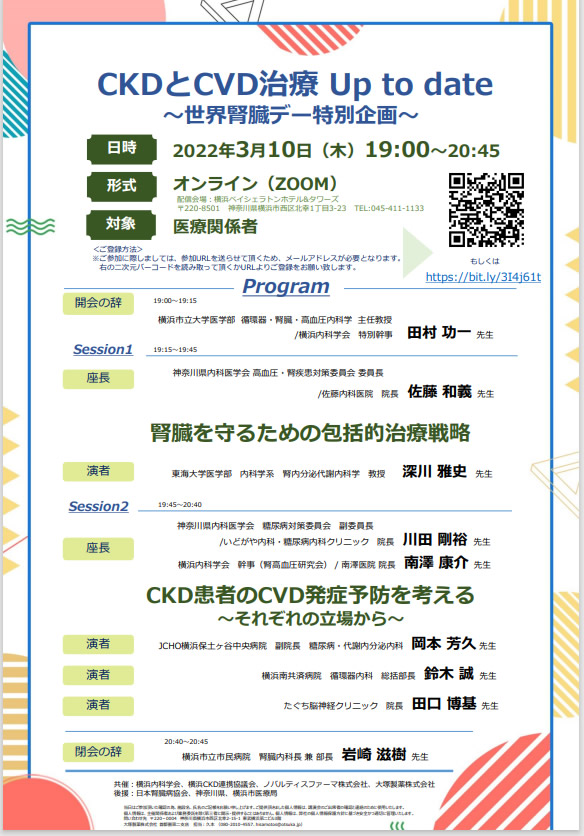 共催:横浜内科学会、横浜CKD連携協議会、ノバルティスファーマ株式会社、大塚製薬株式会社