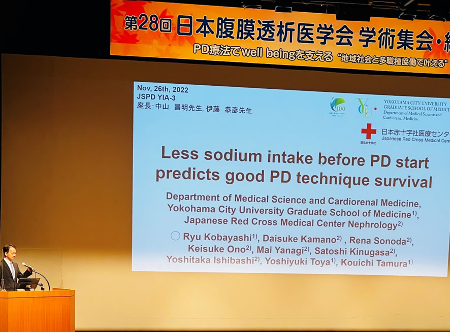 小林 竜助教は、腹膜透析治療に携わる若手会員を対象に腹膜透析研究の奨励を目的としたYoung Investigator賞 (YIA)を受賞され、英語で口演を行いました。