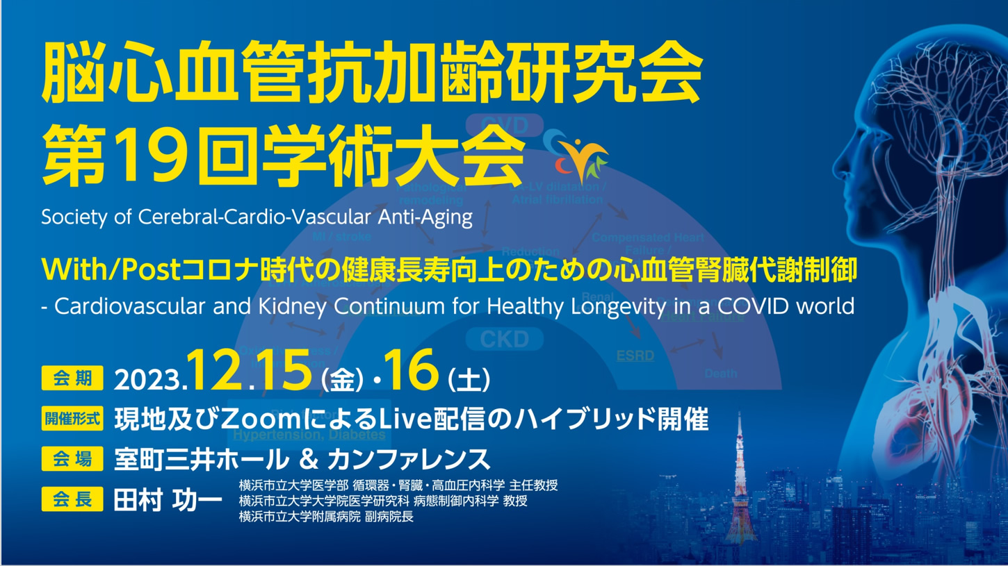 来年、脳心血管抗加齢研究会 第19回学術大会(2023年12月15日-16日、東京)は、当教室の田村 功一 主任教授が大会長となり開催されます(事務局長:小豆島 健護 助教)!皆様、積極的な演題応募を含めまして奮ってご参加いただけますよう、よろしくお願いいたします!