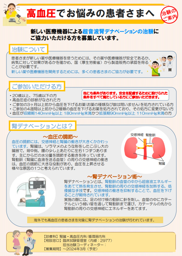 令和4年度 神奈川県 腎疾患対策医療従事者向け研修会開催(2023年3月2日(木)18:30-19:45 WEB開催)において、田村功一主任教授が講演を行います