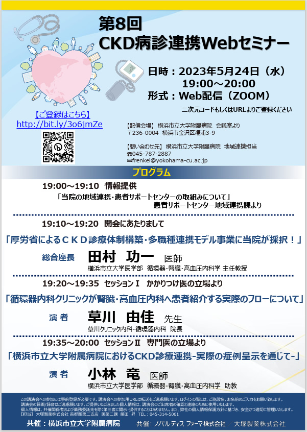 対象者: 医療従事者の方々(かかりつけ医、薬剤師、栄養士、看護師、腎臓病療養指導師など)