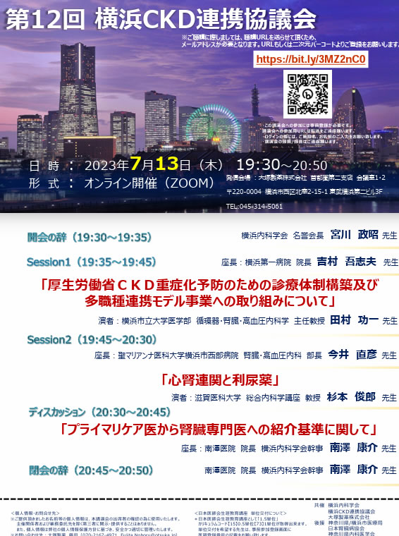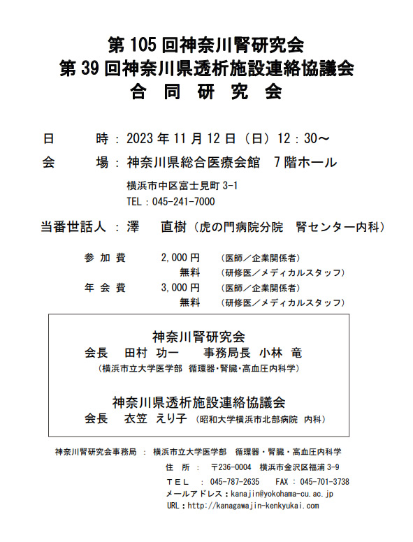 令和4年度 神奈川県 腎疾患対策医療従事者向け研修会 開催のお知らせ